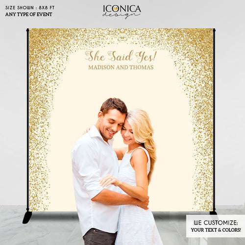 Engagement Party Decor Photo Backdrop,She said yes! Personalized Backdrop,Engagement Party Banner,Printed Or Digital File BBR0040