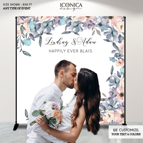 Engagement Party decorations,Blush Pink and Dusty Blue Floral Wedding Decor,Floral Wedding Photo backdrop,Personalized {Lindsay Collection}