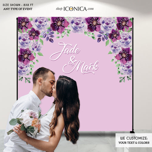 Engagement party backdrop,Personalized step and repeat backdrop, Purple engagement party photo backdrop,Lilac wedding decor BWD0023