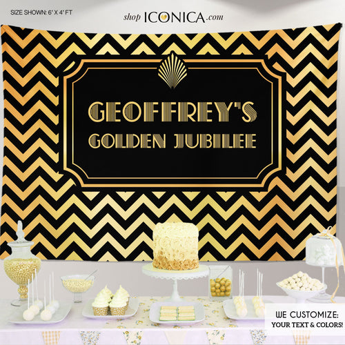 Chevron Photo Booth Backdrop, Chevron Golden Jubilee Backdrop, Gold Virtual Retirement Party Backdrop, Printed Or Printable File BRT0007
