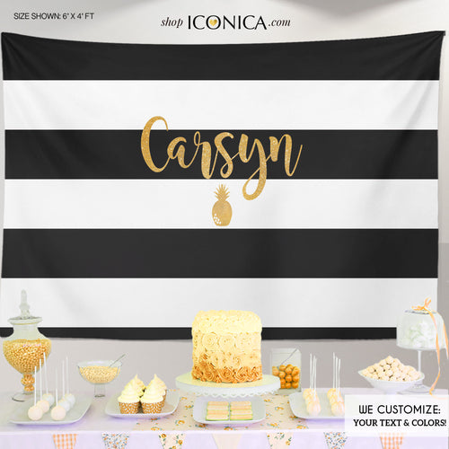 Pineapple Party Backdrop, Black And White Stripes backdrop, Pineapple Party Decorations, Any graphic - Printed Or Printable File