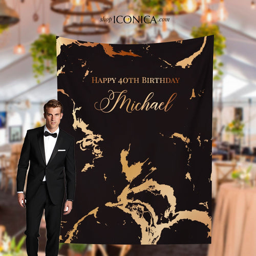 Marbled Back and gold Backdrop for reception Backdrop 40th Birthday Banner Personalized Photo Booth backdrop {Marbled Collection}
