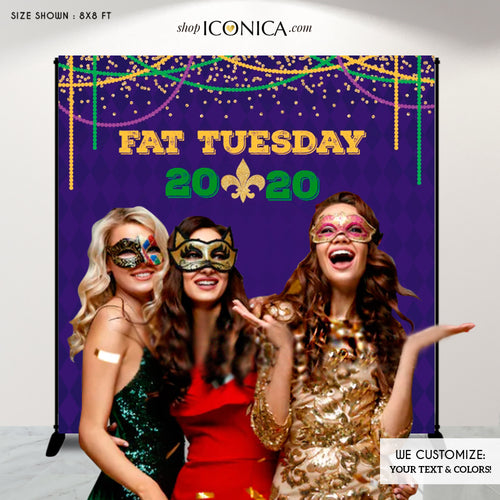 Fat Tuesday Party Backdrop, Mardi Gras Party Backdrop,Masquerade Ball Birthday Decorations,Personalized Masquerade Photo Backdrop Any color