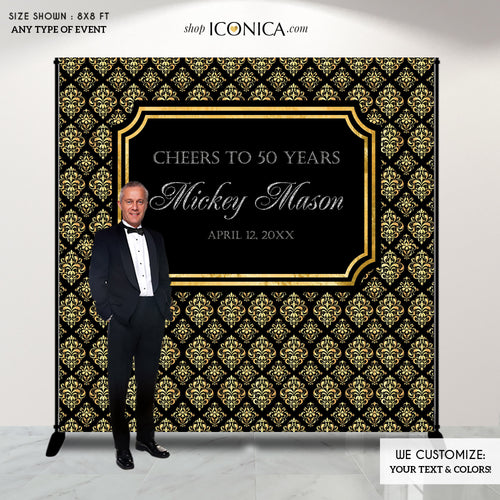 Black And Gold 50th Birthday Party Backdrop Adult Birthday - Any Age Party Banner Damask Pattern Elegant Printed Or Printable File Bbd0030
