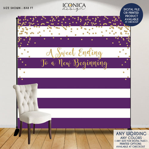 Retirement Party Photo Booth Backdrop, Virtual Purple Floral Step and Repeat Backdrop, A sweet ending, Banner Printed Or Printable File