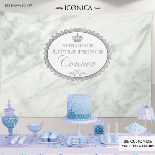 Marble Party Backdrop, Silver Marble Party Banner, Baby Boy Lillte Prince Banner - Any type of Event - Printed or Printable File