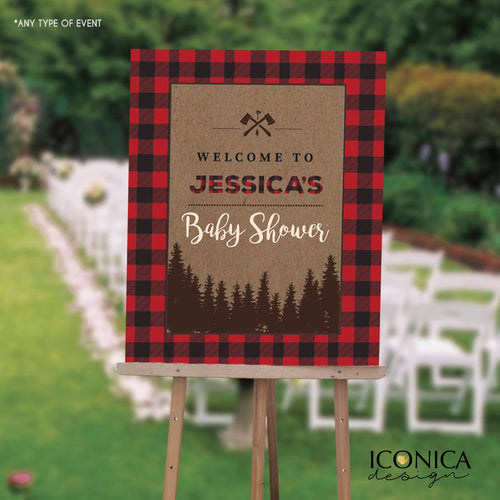 Lumberjack Baby Shower Welcome Sign , Buffalo Plaid Sign,Flannel Plaid, Printed