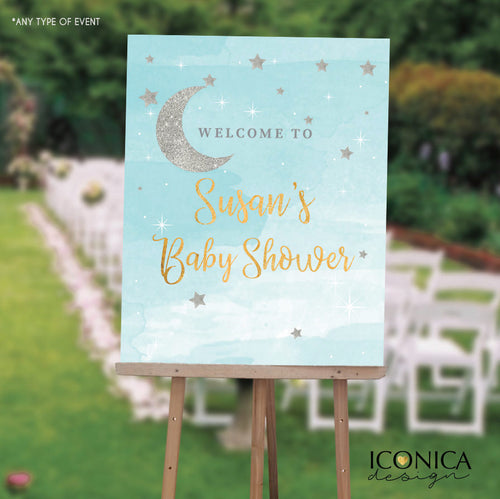 Twinkle Twinkle Welcome Sign , Little Star Welcome Baby Sign, Blue Watercolor , Boys First Birthday Decor, Printed SWBS006