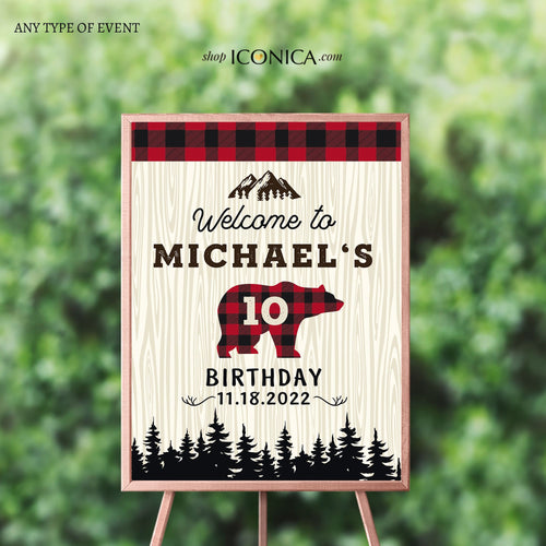 Lumberjack Birthday Welcome Sign Personalized Printed Buffalo Plaid Welcome Sign Checked Plaid Red and Black plaid Lumberjack Welcome sign
